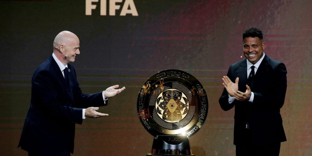 Quem também participou do evento foi o ex-atacante da seleção brasileira Ronaldo Fenômeno, que apresentou ao lado de Infantino o troféu do novo Mundial. Idealizada por uma joalheria de luxo norte-americana, a peça de ouro de 24 quilates imagens da história do futebol e os nomes dos 211 países membros da Fifa. Seu formato redondo simula o sistema solar no dia da abertura da competição (15 de junho).